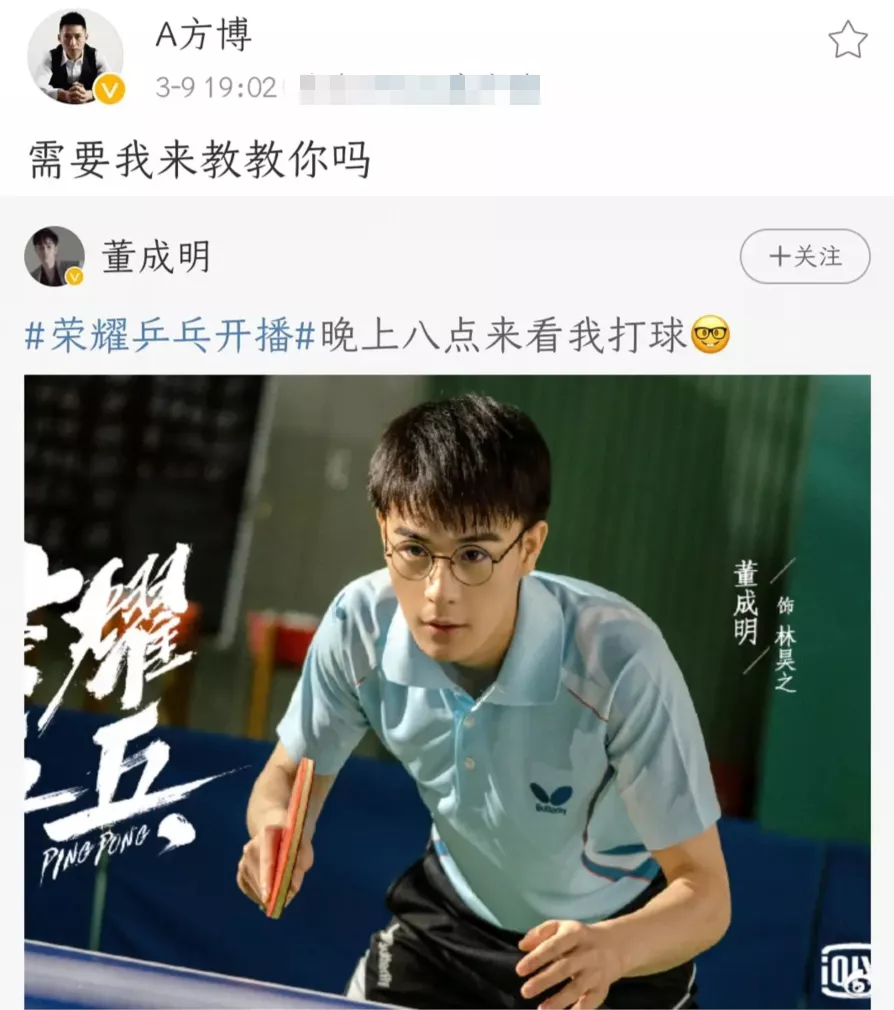 剧情很燃,白敬亭还为这部剧增肌了34斤,私下也一直在练乒乓球,电视剧每集结尾还会向大家科普一些乒乓球方面的知识,在电视剧开播后,方博也转发了演员董成明的微博,为这部剧宣传。