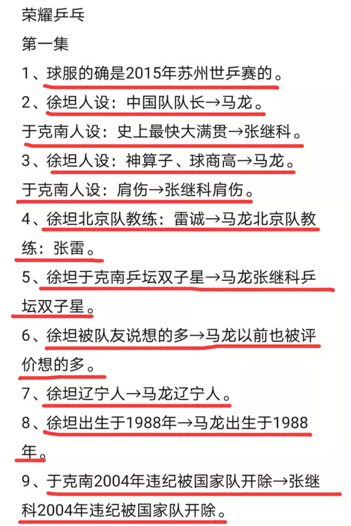有球迷统计了短短一集里,两位男主跟马龙、张继科的相似经历,可以看到,无论是他们的身份、背景、人设、出生年月日,包括于克南和张继科04年被国家队开除的经历都一模一样。