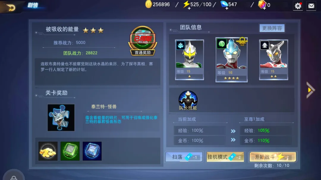 战斗前,玩家需要将3位不同的奥特曼组成一队,并任命一位奥特曼担任队长。