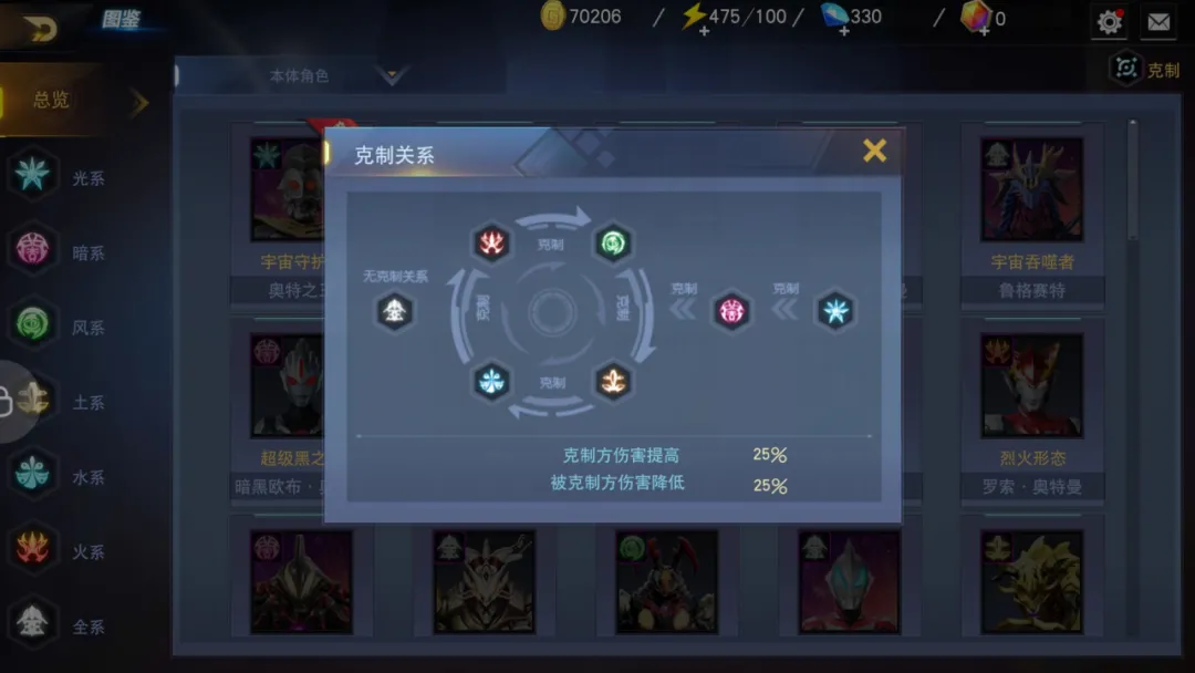 装备有品质之分,技能有等级之分,羁绊需要达成激活条件,源晶有星级之分,形态需要初始形态满星。虽然各自的设计略有不同,但作用都是用来强化奥特曼的属性。