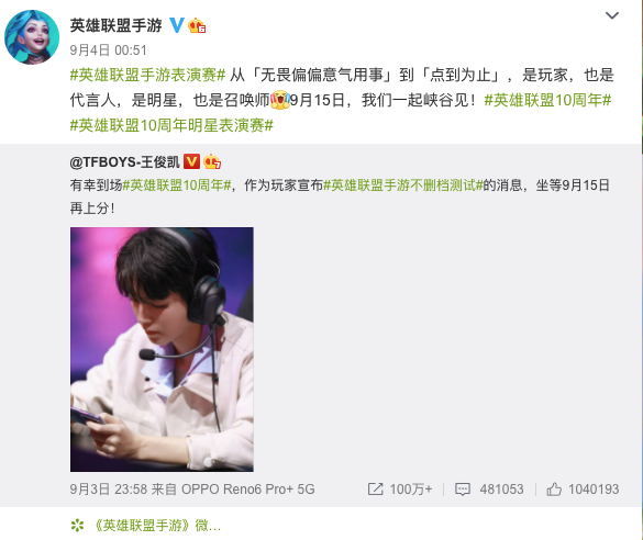 隔壁《王者荣耀》看《英雄联盟》手游15号出,还搞了不少动作,什么各种皮肤限免10天,新赛季提前更新,跟86版西游记联动等。