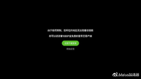 先下载Malus软件,注册登录后,点击中间的圆圈开启服务即可。开启Malus服务后,再打开爱奇艺就能回到国内版爱奇艺了。