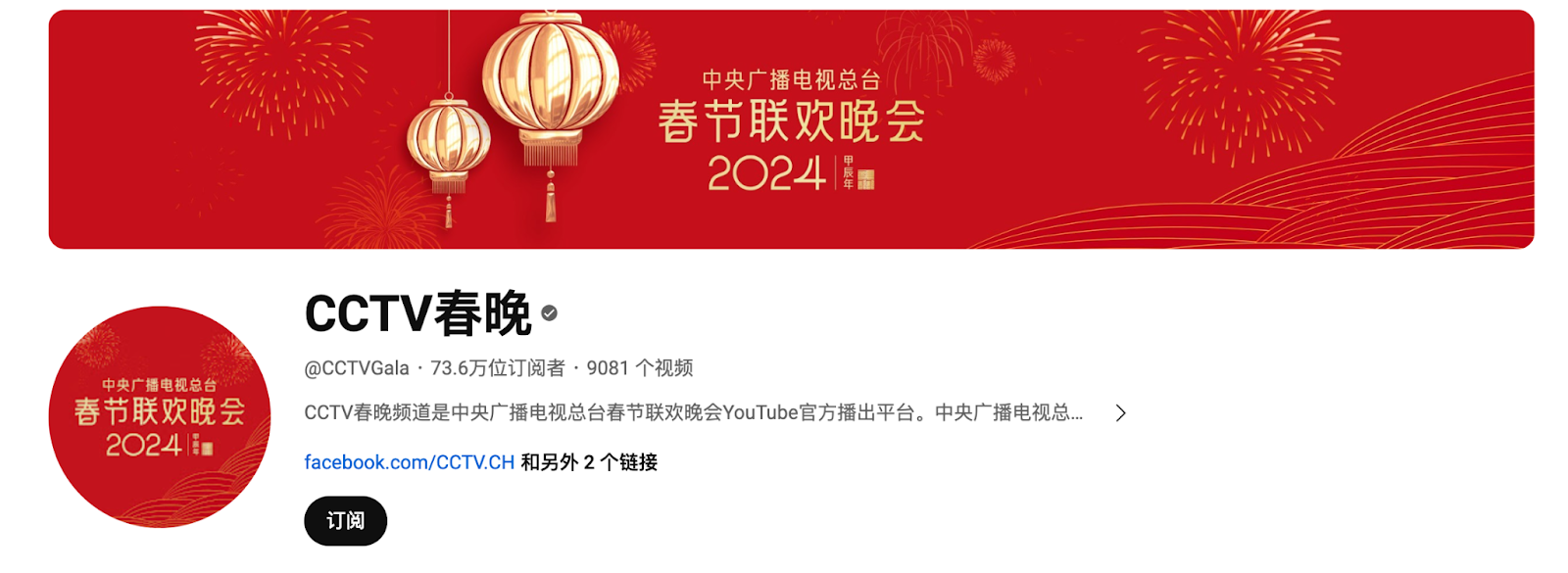 CCTV春晚频道是中央广播电视总台春节联欢晚会YouTube官方播出平台。CCTV春晚频道在每年农历除夕夜的北京时间20:00对春晚进行现场直播。