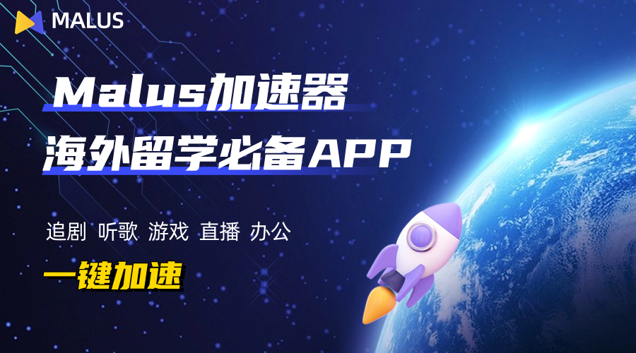 Malus加速器:适用于海外华人,一键解除版权限制问题,提供7天高级会员免费时长。