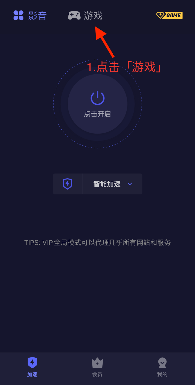 标准会员可以选择智能加速、全局模式、应用模式中的任意一个模式,开启服务。