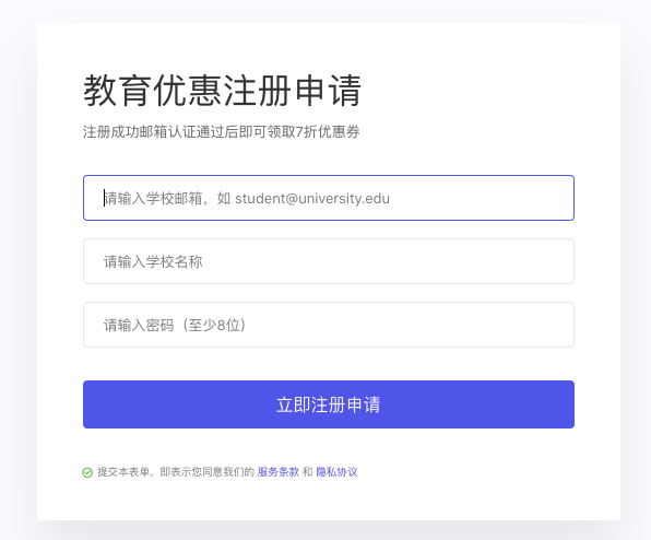 如果您之前就使用edu邮箱注册,我们已帮您自动认证为学生用户,无需再次注册。