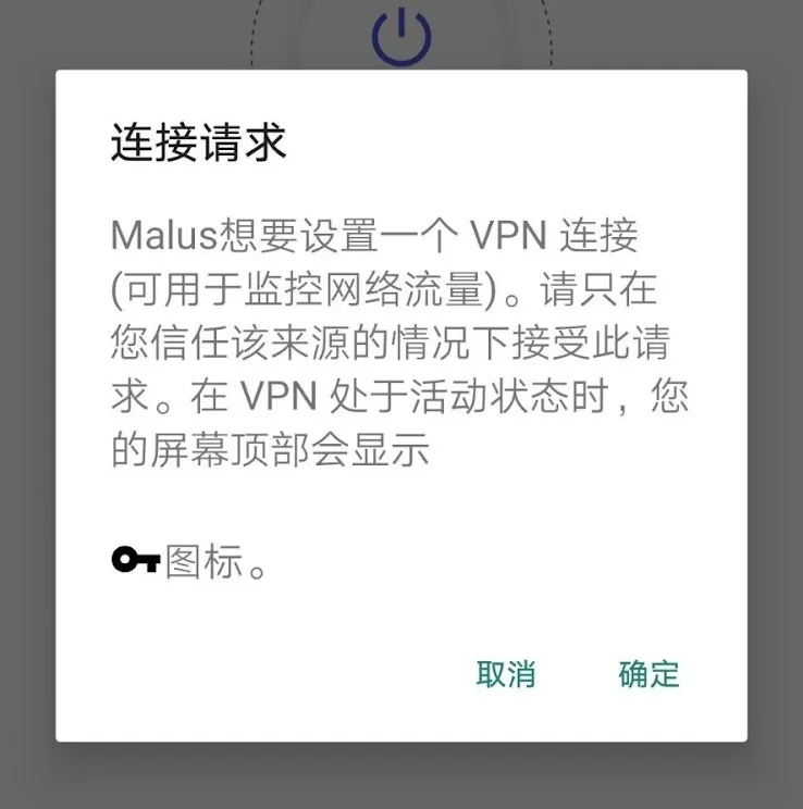 安卓出现“连接请求”,点击确定无反应可能是本机有其他代理或安全管家一类的做了屏蔽。