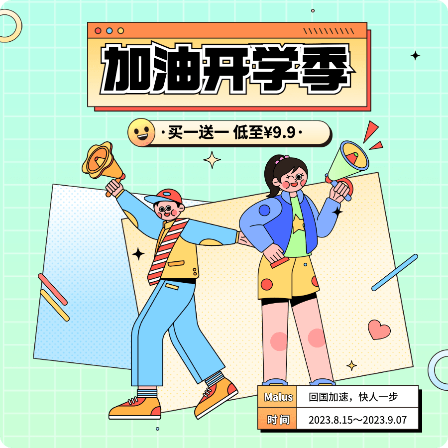 malus经常推出各种活动,例如现在开学季,会员买一送一,首月9.9元起,低至0.5元/天。