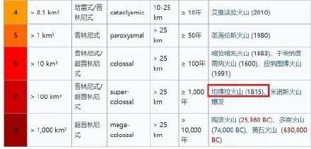 “无夏之年”是指火山喷出的硫化物,转变为硫酸盐气溶胶遍布于大气中,就像一把遮阳伞,阻挡来自太阳的热量辐射,导致全球降温。据历史记载,印尼坦博拉火山爆发(VEI7级),直接导致了1816年的“无夏之年”。