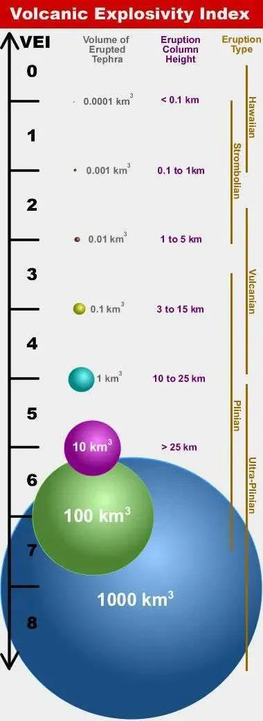针对这次火山爆发的灾害评估为“普林尼型”。根据“火山爆发强度指数”(VEI)来看,1为最低级,8为最高级。
