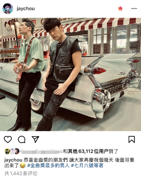 在昨晚的金曲奖颁奖礼结束后,周杰伦通过社交平台发文称:“恭喜金曲奖的朋友们,让大家再庆祝个几天,后面哥要出来了”。据了解,周杰伦自出道以来在金曲奖共入围50次,获得15座金曲奖项。