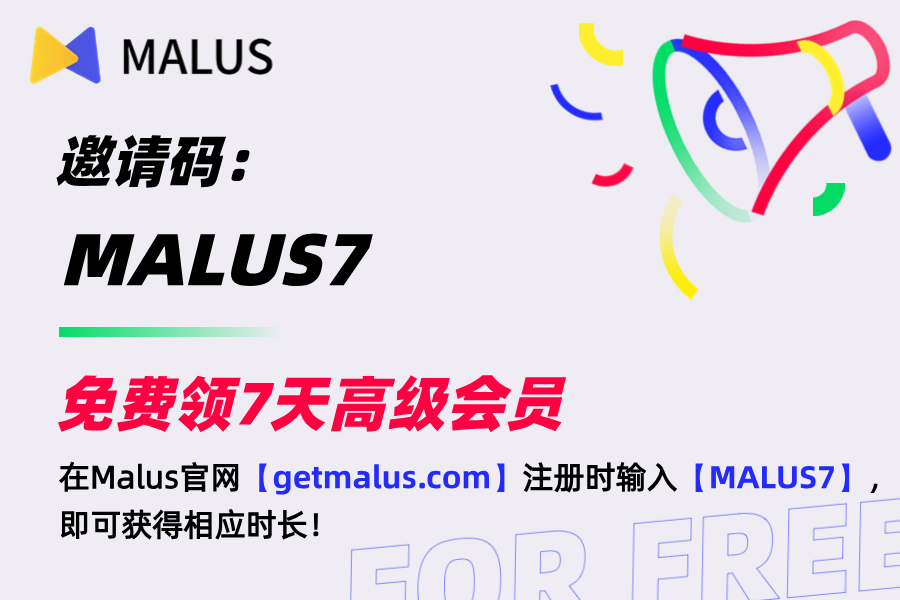 点击Malus官网,在注册页面输入邀请码:【MALUS7 】即可免费获得7天高级会员!