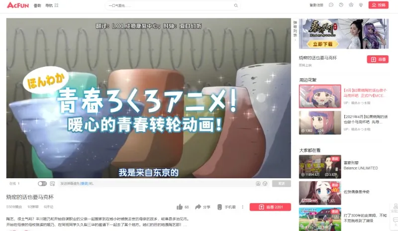 Acfun也大量购买了奥特曼的播放权,而他们购买的番剧《烧窑的花也要马克杯》在日本已经播放,却仍未上映。