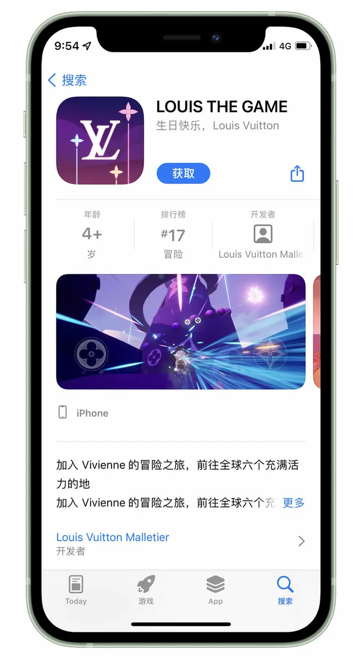 为纪念LV创始人路易·威登先生200周年诞辰,品牌推出的一款手机游戏,而且是可以免费玩的。