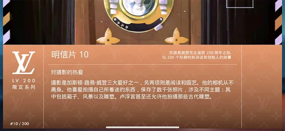 每收集1支蜡烛,便能获得一张明信片,每一张明信片都记载着LV的冷门小知识,一共有200张。
