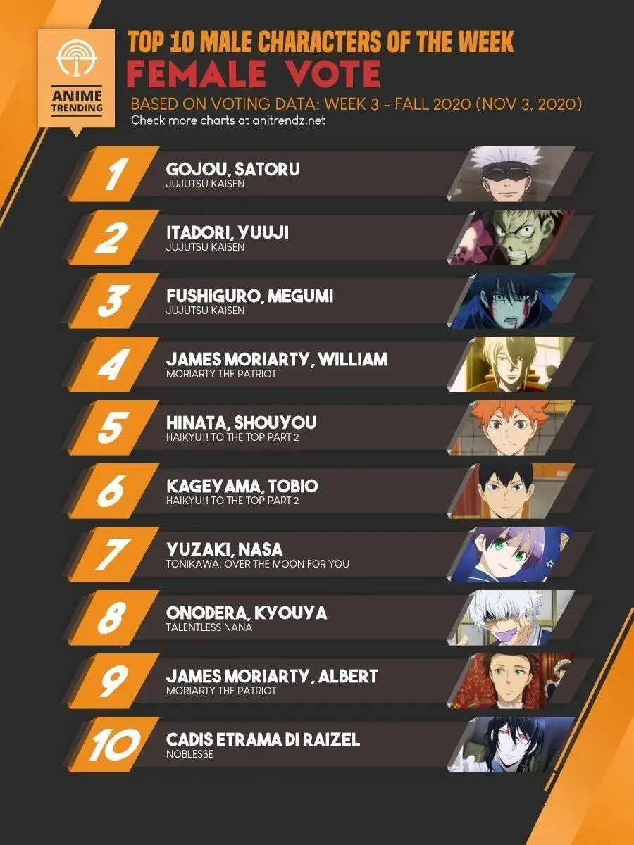 近日,外媒投票的“2020年秋季番剧动画首周人气排行榜”已经成功出炉,其中登顶的是本期《JUMP》的新作《咒术回战》。