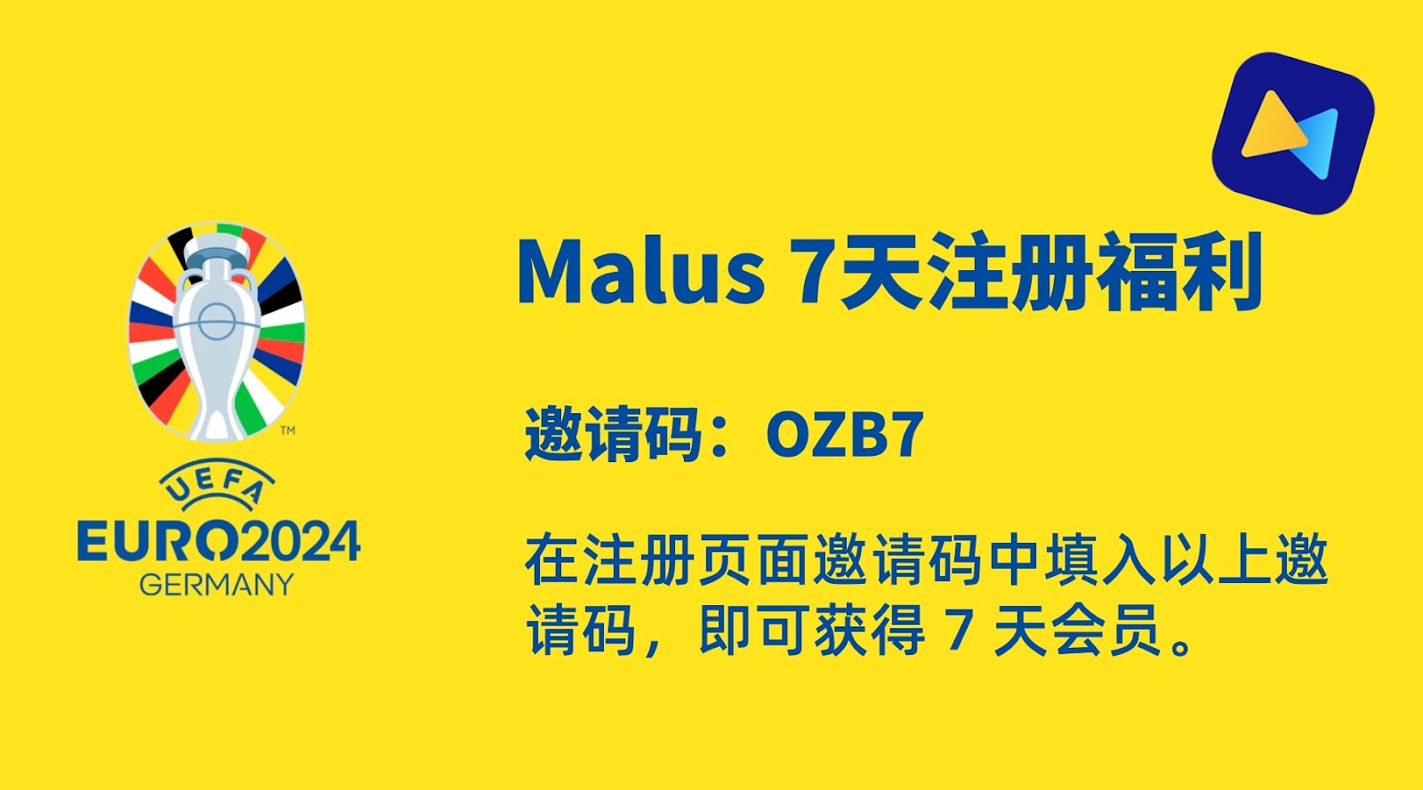 新用户在Malus官网或应用内注册,填写我们的邀请码【OZB7】即可免费领取7天高级会员。另外,新用户购买首月30天会员,低至 9.9元哦!