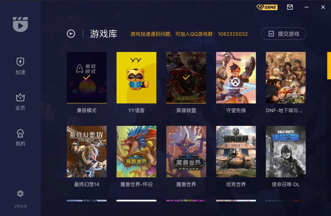 5、游戏加速中遇到任何问题:欢迎加入QQ游戏群:1082325032 反馈给我们。你的反馈,能够帮助我们更好的改进问题哦~