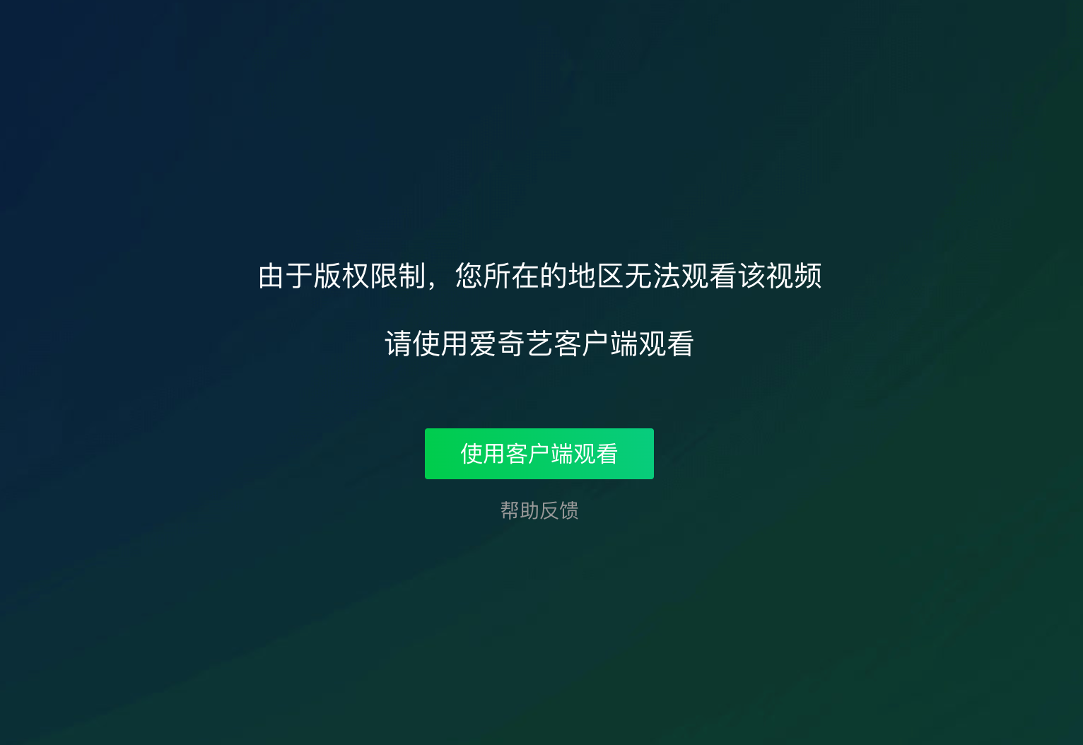 每个海外党可能都经历过这种“痛苦”。在国外打开国内的视频网站,例如爱奇艺、腾讯视频等,会显示: